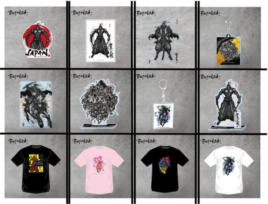 製品ラインナップ:Tシャツ・アクリルキーホルダー、アクリルジオラマ・アクリルブロック・ウォールステッカー・ダイカットステッカー・ステッカー・ポストカードなど
