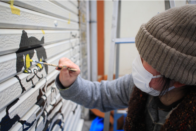 事前の下塗りの段階から周辺住民の方々に注目されていたライブペインティングは、多くの方から「頑張ってね」「めっちゃ可愛い」と声掛けもあり、地元の方々の暖かさのあふれるイベントとなりました。