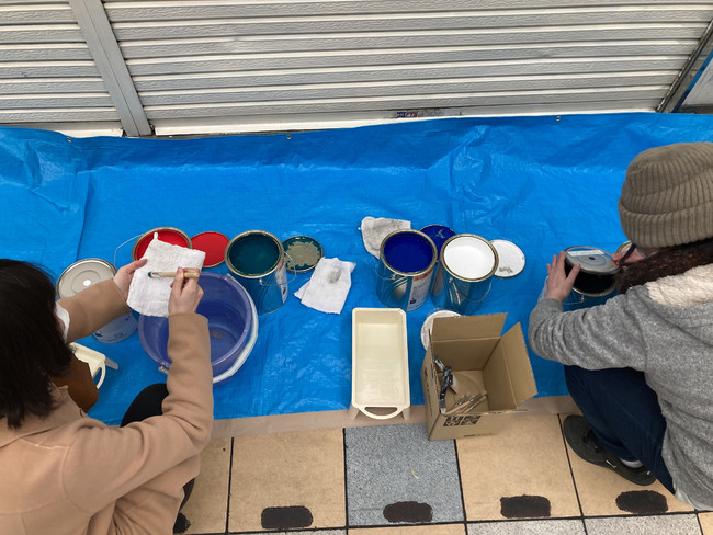 本企画は、阪神尼崎駅周辺を盛り上げる「てらまちプロジェクト協議会」が主催する『てらまちアイデア実践ワークショップ』の一環として行われたもので、当社は2021年12月に開催された「尼崎トンネルアートプロジェクト」協賛のご縁で、引き続き地域に根差した塗料会社として参画させていただきました。