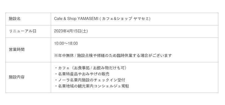 2023年4月15日(土)にノーラ名栗のカフェ「Cafe&Shop YAMASEMI」がリニューアルオープンします。