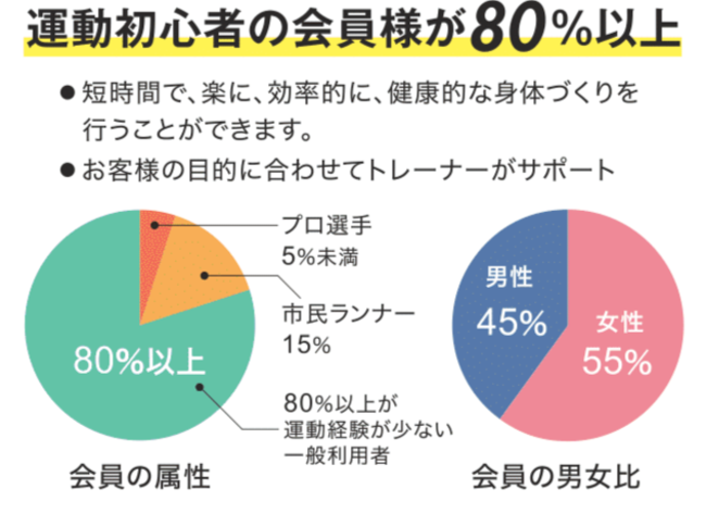 ■運動初心者の会員様が80%以上!短時間で、楽に、効率的に、健康的な身体づくりを。