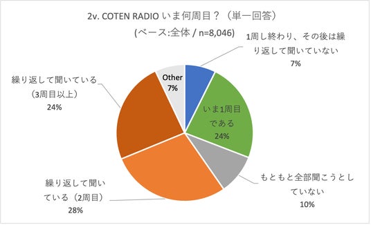 リスナーの28%が2周目を視聴中でした。3周以上視聴いただいているリスナーはなんと24%も!