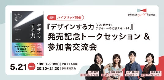 株式会社コンセント(本社:東京都渋谷区 代表:長谷川敦士 以下、コンセント)は、デザイナーに必要なスキルを体系的に解説した著書『デザインする力 「心を動かす」デザイナーの必須スキル24』の出版を記念し、執筆者らによるトークセッション&参加者交流会を、2025年5月21日(水)に東京・恵比寿の会場とオンライン配信とのハイブリッド形式で開催いたします。