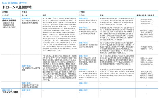 「Radar QFD」は、単なるデータ分析ツールではなく、開発現場でそのまま活用できる実用的な情報を提供します。AIが生成した情報は、分かりやすい構造化データとして整理されており、技術ロードマップ策定や事業戦略立案にも応用可能です。