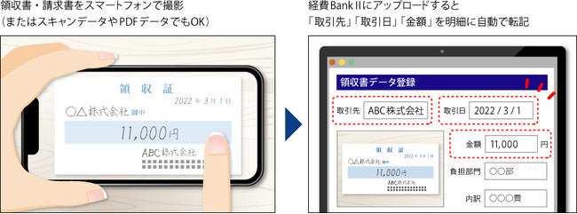 「領収書」と「請求書」それぞれに最適化したOCRエンジンによる読み取り・自動入力で申請業務を大幅に省力化