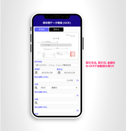 総合フィンテックソリューション企業であるSBI FinTech Solutions株式会社の子会社で、バックオフィス支援サービスを提供するSBIビジネス・ソリューションズ株式会社(本社:東京都港区、代表取締役社長:夏川 雅貴、以下「当社」)は、従業員数50名以下の法人経営者が選ぶ「おすすめしたい経費精算システム」第1位*1であるクラウド型経費精算システム「経費BankII」のアップデートを行い、新たにAI-OCR機能をオプションサービスとして2022年3月16日より提供開始いたします。また、本機能のリリースにあたり、「領収書AI-OCR」及び「請求書AI-OCR」オプションを導入初年度に限り、それぞれ月100枚まで1年間無料で使えるダブルでお得なキャンペーンを実施し、本日より事前申し込みを受付開始することをあわせてお知らせいたします。