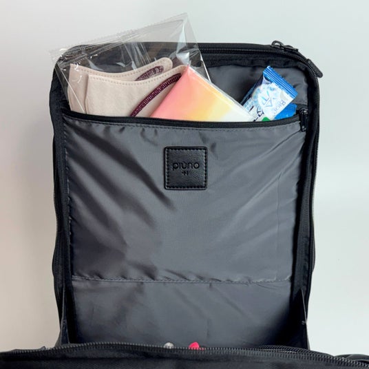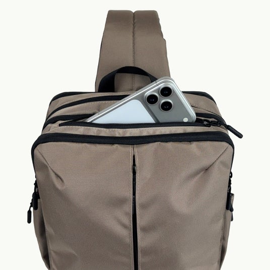 スマートフォンやイヤホンなど、頻繁に出し入れするアイテムを収納できるため、バッグを前に回さなくてもスムーズに取り出すことができます。