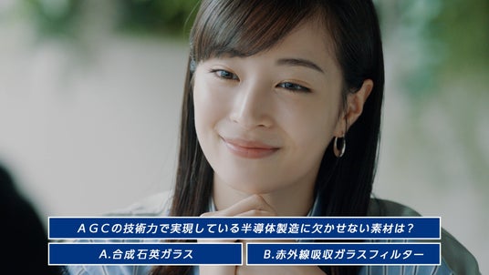 WEB動画では、クイズを通じ、AGCの素材のすごさをより分かりやすく紹介しています。