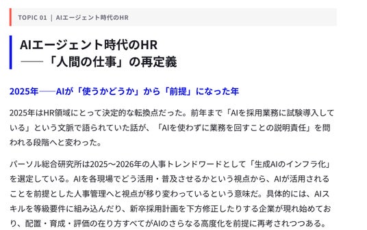 情報収集のコストが下がった今、単なるトレンドの整理に留まらず、「そのデータから何を読み取るか」という解釈の質が、HR担当者の競争力を左右します。