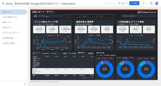 Google広告&GA4 Looker Studioテンプレート(ダークテーマ)で閲覧できる情報