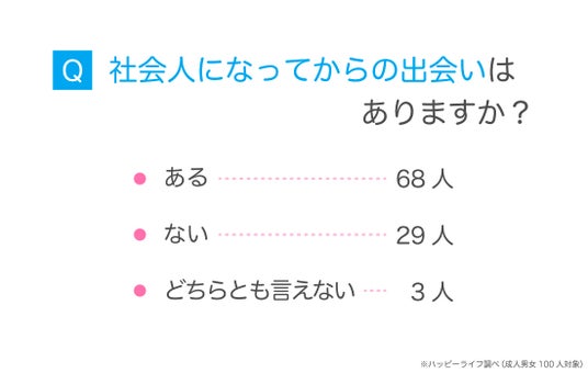社会人になってからの出会いがあるか聞いてみたところ、『ない』と回答した人は3割程度でした。