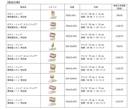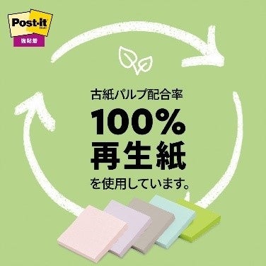 こうした現状を受け、「ポスト・イット(R) 強粘着 見出し/ふせん/ノート 再生紙」のラインナップに、「5 色入り」を追加し、環境認証対応の再生紙ふせんを求めるオフィスユーザーの色の選択肢を広げます。環境認証対応でありながら、5 つの色がそろう本製品は、仕事を効率化するアイテムとしてご活用いただけます。