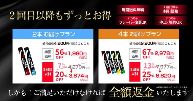 JOODAN CBDは、お客様のご要望にお応えし、2023年6月20日より、初回オファーは変わらず、2回目以降のお値段をよりお買い求めやすい定期価格に改定いたします。