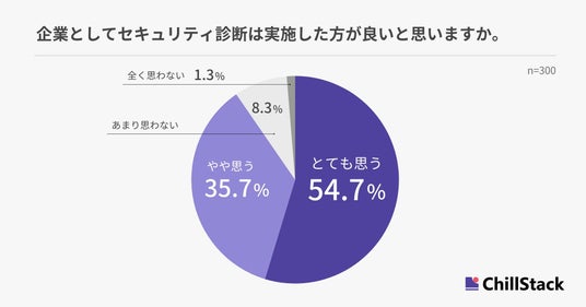 AIを用いた高精度な不正検知サービスやサイバーセキュリティサービスを開発・提供している株式会社ChillStack(本社:東京都渋谷区、代表取締役:伊東道明、以下ChillStack)は、情報システム担当者等を対象に「セキュリティ診断についてのアンケート」を実施し、300名から回答を得ました。