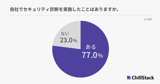 また、自社でセキュリティ診断を実施したことはあるか尋ねたところ、77.0%が「ある」と回答しました(n=300)。