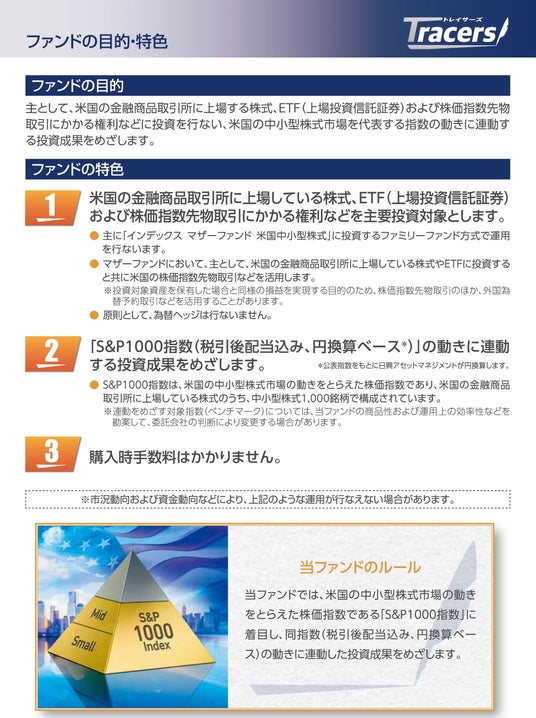 商品名 : 「Tracers S&P1000インデックス(米国中小型株式)」