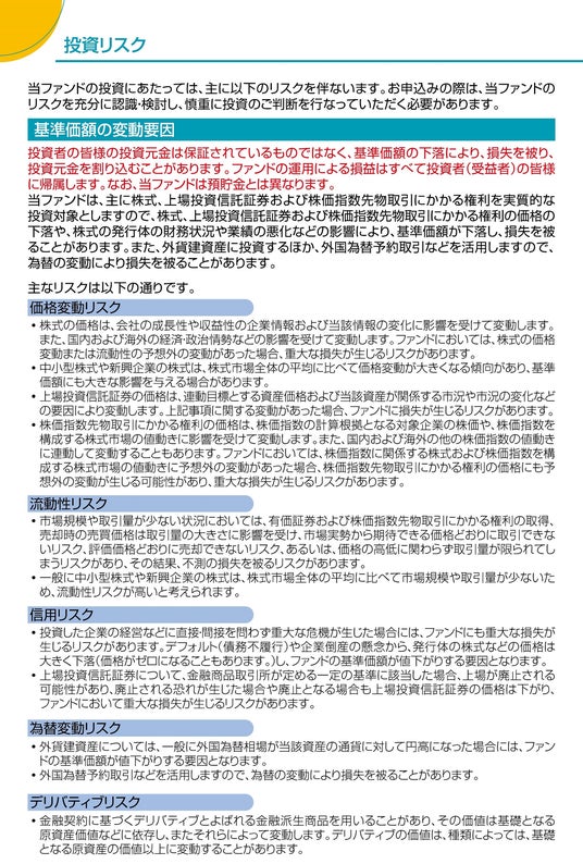 ○ 当ファンドをお申込みの際には、投資信託説明書(交付目論見書)などを販売会社よりお渡ししますので、内容を必ずご確認の上、お客様ご自身でご判断ください。