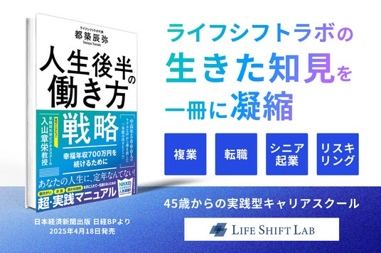 45歳からの実践型キャリアスクール「ライフシフトラボ」を運営する株式会社ライフシフトラボ(代表取締役:都築辰弥、本社:東京都港区、以下「当社」)は、代表の都築辰弥による新刊『人生後半の働き方戦略 - 幸福年収700万円を続けるために』を2025年4月18日(金)に日経BP 日本経済新聞出版より発売します。