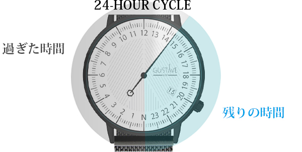 時間の経過を瞬時に確認できるこの『24H Watch』を身につけることで「タイムマネジメント」を可視化することが可能。