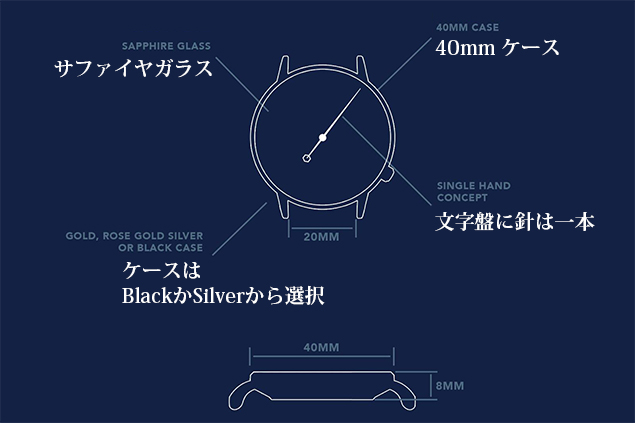 今回お届けするのは国内クラウドファンディングで累計673万6,700円を売り上げた24時間時計の後継機種となります。新たに日付表示機能を追加。コンパス機能はそのままにモノクロを基調としたダイヤル、ブラウンステッチのベルトを新たにラインナップしました。