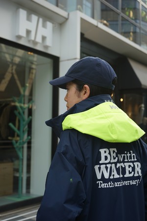 アイテムは、HELLY HANSENの人気のラインナップから、それぞれジャケット・Tシャツ・キャップをベースに、デザインには、これまで何度も一緒に取り組みをしてきたアーティスト【Letterboy】さんに、「BE WITH WATER 10TH ANNIVERSARY」のスペシャルロゴを “ハンドペイント”で作成していただきました。これまでに原宿店が、多くの人々の手によって歩んできた10年と、そしてこれからも手を取り合ってお店を作っていくことを意味しています。