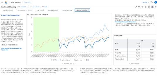 1.AI機能の搭載:業績予測をAI(機械学習)が行う機能がリリースされました。過去の実績傾向に基づく予測や、前提(ex.天候、インフレ、消費者物価指数)を変えた場合のシナリオ分析が可能となります。AIの搭載により、過去の傾向に無い異常な数値があった際にすぐに気づけるアラート機能、過去の傾向に基づく業績予測がシステムで自動で行えることで、経営企画はより戦略的な業務に集中することができます。