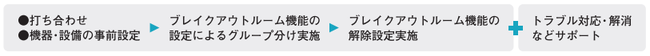 「グループワークプラン」は、オンラインに対する専門知識を身に着けたオンラインサポートスタッフによる「オンラインサポート」を組み合わせたグループワーク研修に特化したオンラインプランです。具体的には、打ち合わせ時のオンライン開催方法の提案から、当日のブレイクアウトルームの運用、トラブル解消まで対応致します。『オンラインのノウハウがない』『機材の運営にスタッフが割けない』などお悩みの事務局様の手間を軽減し、当日は安心して受講生との研修に臨んでいただけます。