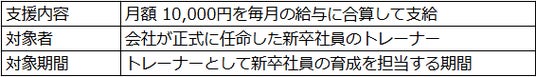 当社では、新入社員のプロフェッショナルとしての活躍を支援するため、約3ヶ月の新入社員研修のほか、トレーナーによる配属後のOJTに取り組んできました。OJTを担当するトレーナーは、自身の通常業務に加え、新入社員の指導・育成という重要な役割を担います。新入社員育成担当であるトレーナーへの手当は、育成の質をさらに高め、新入社員の早期戦力化を促進すると考え、本制度の導入に至りました。