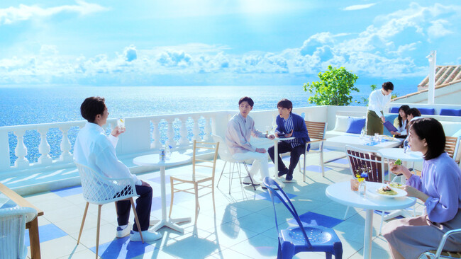 高橋さんが真っ青な海と空が一望できるカフェテラスで「氷結(R)無糖」 を楽しもうとしていると、2人の男性がメニューを選びながらチューハイについて話している様子。その会話を聞いて高橋さんは、「チューハイってなんか甘すぎない?」に対し「だから氷結(R)無糖!」と、「でも無糖じゃ味気ないしな・・・」に対し「いや、余計な甘さがしないからこそ!」と、「氷結(R)無糖」のおいしさを心の中で叫びます。そして「氷結(R)無糖」を氷が入ったグラスに注ぎ、炭酸が弾ける爽やかな「氷結(R)無糖」を一口飲んだ高橋さんは、思わず「おいしい!」と感想をもらします。高橋さんのおいしそうな表情と発言を聞いた男性が「そうなんですか?」と身を乗り出して聞くと、高橋さんは力強く頷きます。「チューハイは甘い」「氷結(R)無糖は味気ない」という思い込みを覆すほどのおいしさを実感している高橋さん心の叫びに注目です!