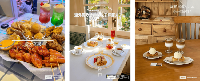K-POPのミュージックビデオに出てくるような雰囲気を再現した「チーズマニマニ(東京)」や、明治期に建設された洋館内にある「北野異人館 旧ムーア邸(兵庫)」など、コンセプトのある空間を演出した「海外風グルメ店&カフェ」が好まれる傾向。Z世代に人気のカフェでは、撮影スポットや小道具を用意しているところもあり、店舗側も「写真映え」を意識していることがわかる。