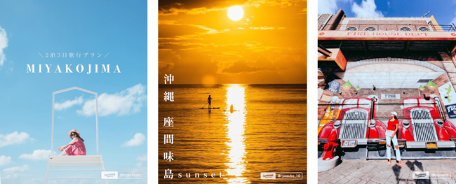 (写真:左から、宮古島/座間味島/アメリカンビレッジ)