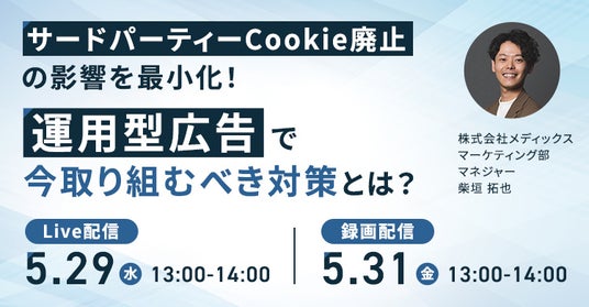 株式会社メディックス(本社:東京都千代田区、代表取締役:田中正則)は、BtoCのWebマーケティングの担当者様向けに、オンラインにて「サードパーティーCookie廃止の影響を最小化!運用型広告で今取り組むべき対策とは?」セミナーを開催いたします。