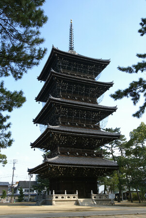 高さ約43メートルの五重塔は、国内の木造塔として3番目の高さを誇ります。創建以来、焼失等により再建を繰り返し、現在は4代目。幕末に着工して、1902年(明治35年)に完成し、江戸時代の技法による塔婆建築の到達点を示していると言われます。今回、普段は入ることができない初層・第二層が特別に公開されます。五層目の屋根から吊られた心柱が、地上からわずかに浮く特殊な構造に注目です。