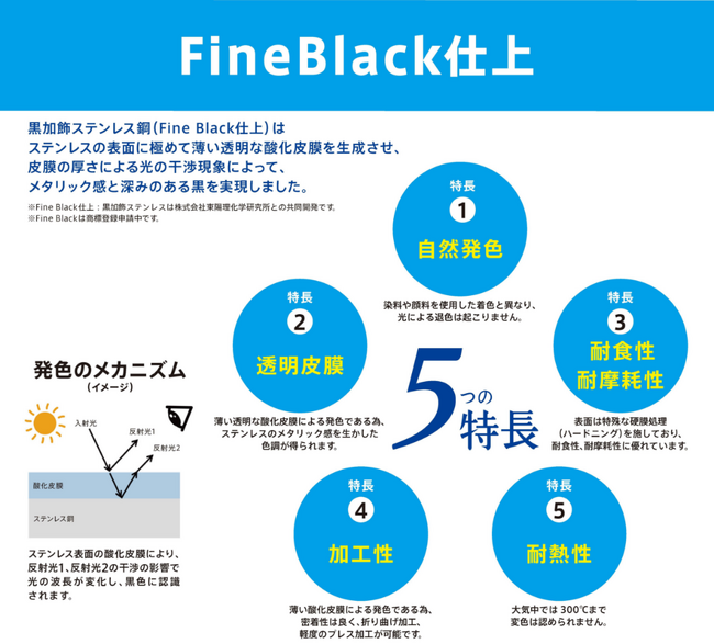 1.メタリック感と深みのある黒を実現したFineBlack仕上(黒加飾ステンレス鋼)※3
