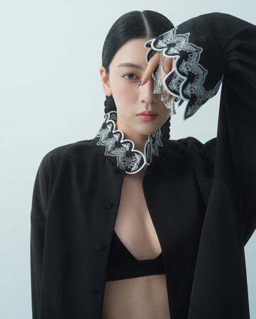 今回の為に撮り下ろした LOOK では、世界的に活躍する女優・モデルの三吉彩花氏が、この特別なコラボレーションアイテムを着こなしています。