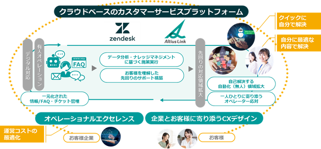 Zendeskは、アルティウスリンクとベストプラクティスソリューションを共創することにより、データ分析に基づくアプローチ戦略を推進するとともに、クラウドベースのカスタマーサービスプラットフォームを段階的に拡大し、お客様にとってより良いコミュニケーションエクスペリエンスを創造することに取り組んでまいります。