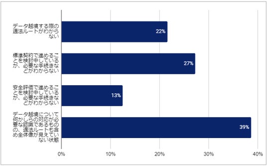 データ越境の対応には複数の適法ルートがあり、それぞれ必要な対応や手続き、期間などが違います。適法ルートについて企業はどういった課題を抱えているのか?について回答をいただきました。