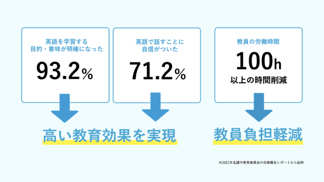 国際交流授業を通して生徒たちに、"英語が通じた"という成功体験、"通じなかった"という失敗体験をしてもらい、モチベーションの向上やICTを活用した主体的な学びへと繋げ、学びの構造を根本的に変えています。