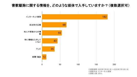 害獣駆除に関する情報源は「インターネット検索」が主流