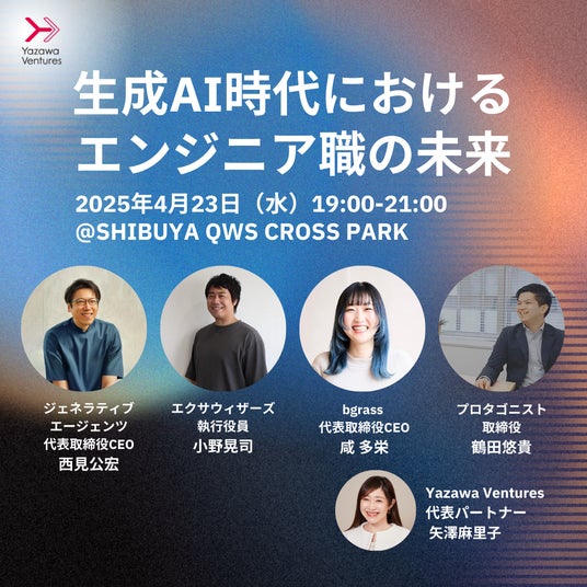 シード特化のベンチャーキャピタルである株式会社Yazawa Ventures(本社:東京都渋谷区 代表取締役:矢澤 麻里子 以下:当社)は、生成AI時代のキャリア形成について考えるイベントを開催することをお知らせいたします。