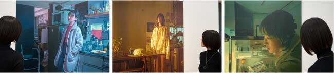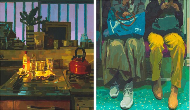 森本は、「ありふれた日常」の瞬間を絵画にします。森本の絵画はファンタジーでもなく特別な瞬間でもなく、ありきたりな風景の中に美しさや神秘性を見出し、描かれた誰でもない誰かが主人公になります。本展のために制作された新作では、部屋の中や食事、ショッピングなど、自身と同世代の若者たちのプライベートな空間に入り込みます。過去作品と比較すると更にパーソナルな風景を描き出し、何気ない日常の一コマがドラマチックな瞬間へ変貌します。