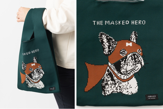 凛々しい表情でヒーローマスクをかぶったワンちゃんのデザイン。
