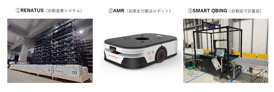 2023年12月より進めている自動倉庫システム「RENATUS」の設置工事に続き、2024年4月下旬ごろからはIPLUSMOBOTのAMRの設置準備を開始いたします。3.埼玉草加フルフィルメントセンターに設置されるロボットのラインナップ