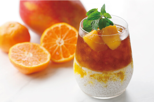 ベルガモットの爽やかな香りが楽しめるリプトンのアールグレイをベースに、マンゴーとみかんのソース、ココナッツにはホワイトチアシードを合わせて、とろっ・ぷるっとした食感に。夏にぴったりなトロピカルアイスティに仕上がりました。
