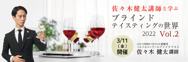 完全オンラインのワインスクール ヴィノテラスが、【佐々木健太講師と学ぶブラインドテイスティングの世界2022 Vol.2】を開講致します。