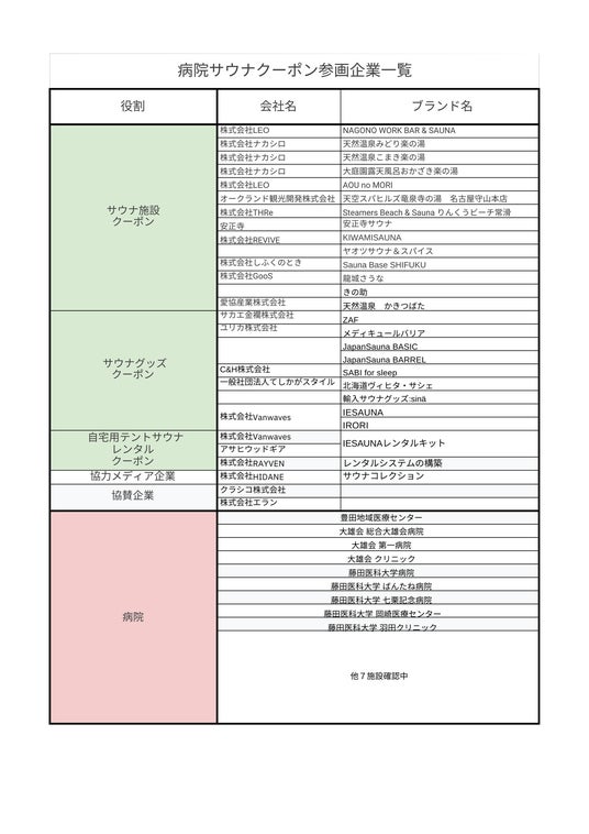 ■病院サウナクーポン参画企業・病院一覧