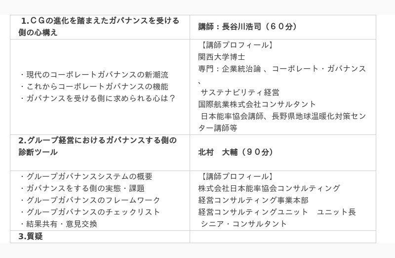 本セミナーでは、ガバナンスを受ける側としての経営陣の心構えと、グループ経営を担う経営陣として、ガバナンスをする側のフレームワークと着眼点をご紹介いたします。