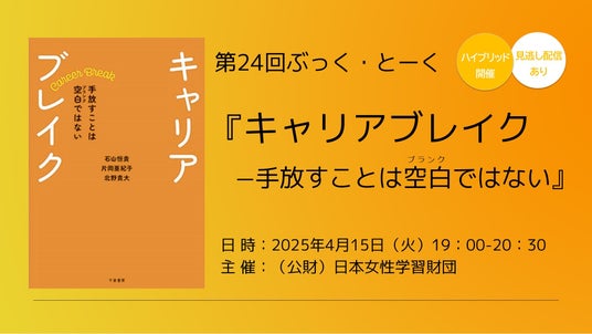 2025年度(公財)日本女性学習財団 第24回ぶっく・とーく[2025年4月15日(火)19:00~20:30、ハイブリッド(会場・オンライン(Zoom))開催、見逃し配信あり]