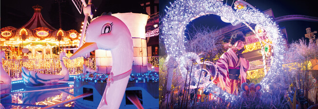 16:00からは園内がライトアップ。さくら色のイルミネーションをお楽しみください。