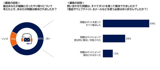 その結果、チャットボットの解決率は85%でした。同時に調査した電話チャネルの解決率93%と比べると若干低い値であるもののある程度解決力はあるということがわかります。